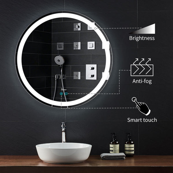 Led Anti Fog Touch Switch Bathroom Round Mirrors With Natural Lighting Phasat