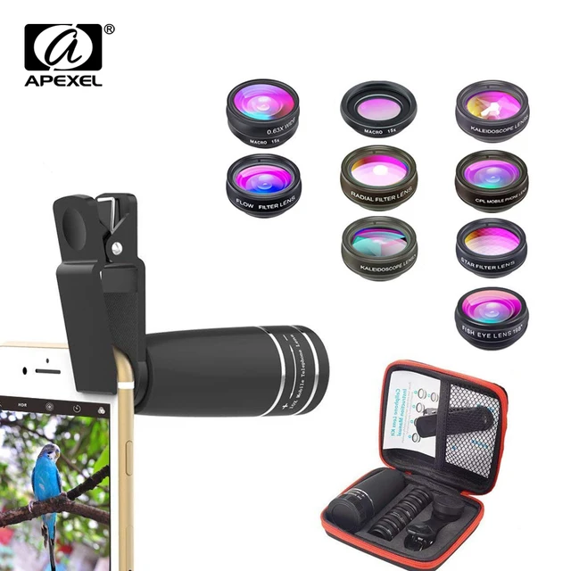 Apexel 10 In 1 Cell Phone Camera Lens Kit Wide Angle Lens Macro Lens Fisheye Lens Telephoto Lens Cpl Flow Radial Star Filter Kaleidoscope 3 6 Lens For Iphone Samsung Sony And Most Of Smartphone Talkingbread Co Il