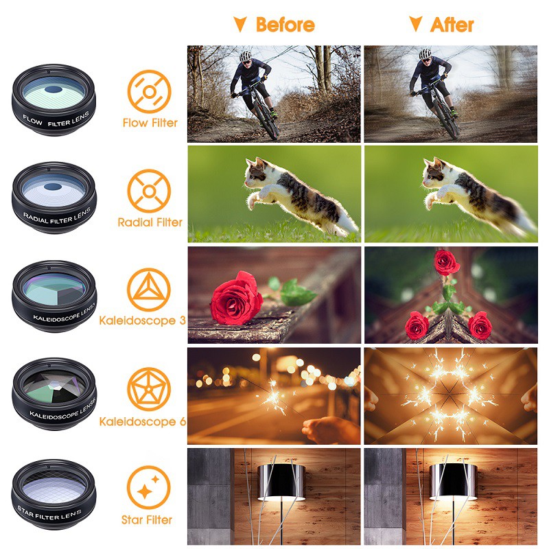 Amazon Com Apexel 10 In 1 Phone Camera Lens Kit Wide Angle Macro Fisheye Telephoto Cpl Flow Radial Star Filter Kaleidoscope Lens For Iphone And Most Phone Camera Photo