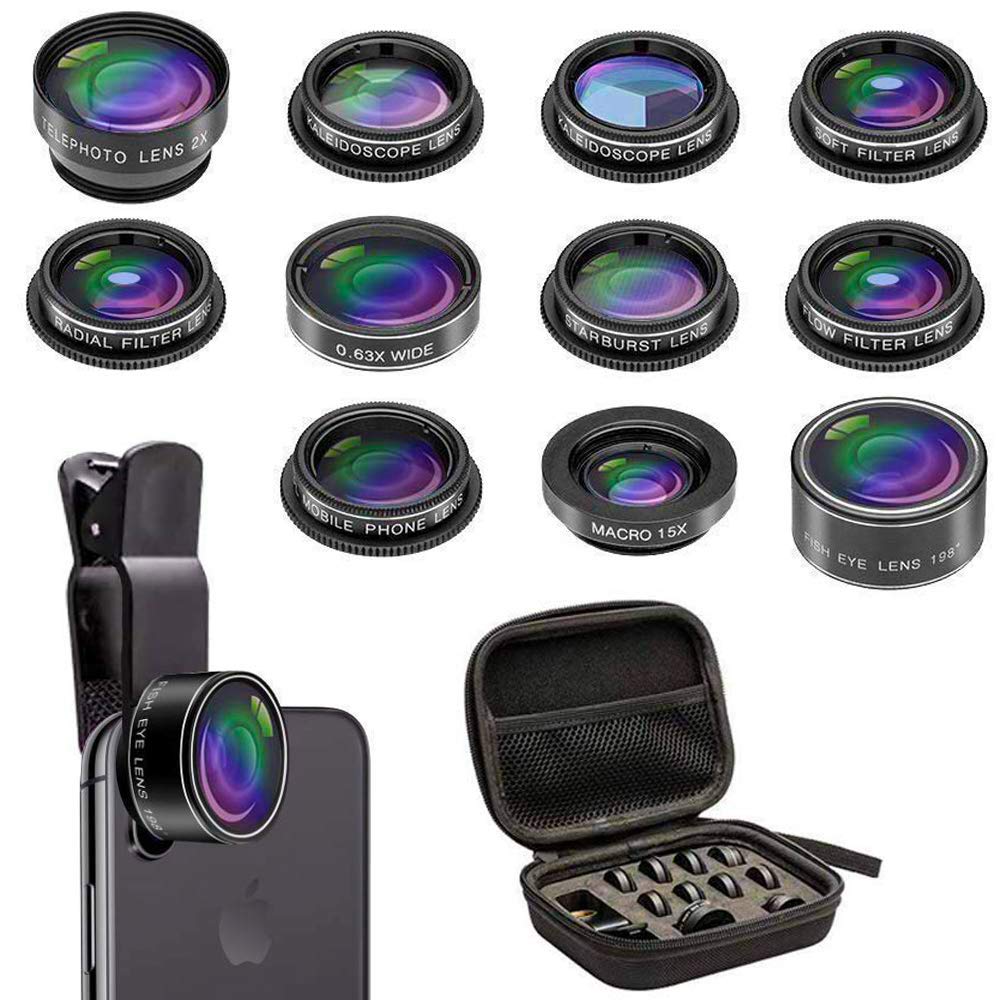 Phone Camera Lens Kit 11 In 1 Cellphone Lens Kit For Iphone And Android 0 63x Wide Angle 15x Macro 198 Fisheye Telephoto Cpl Flow Radial Star Soft Filter Kaleidoscope Lens Buy Online In Bosnia And Herzegovina At Bosnia Desertcart Com Productid
