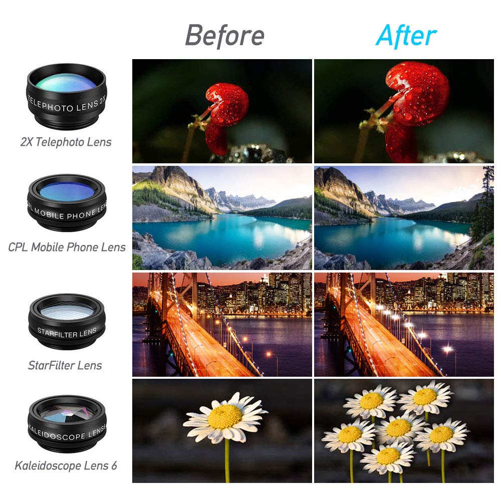 Amazon Com Cell Phone Camera Lens Kit 11 In 1 Super Wide Angle Macro Fisheye Lens Telephoto Cpl 3 6 Kaleidoscope Starburst Radial Soft Flow Filter Lens Compatible For Iphone X 8 7 6s 6 Plus Samsung Android Camera Photo