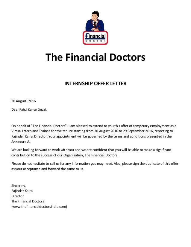 Internship Offer Letter Format In India Download Myonlineca