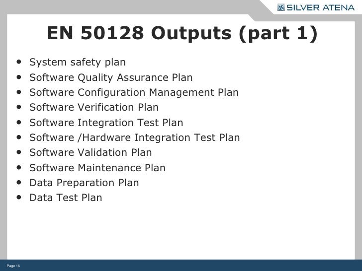 En 50128. En In most other industries, there are (so far) no governmental authorities (eg automotive industry) The manufacturer must ensure himself the compliance with standards and only when the product liability law is applied, then the corresponding evidence must be provided. This document is intended to serve as a reference for the usage of VectorCAST products with the European Standard EN (EN Software for railway control and protection systems", March 01),. Background • Approved by CENELEC as EN on • Closing date for IEC voting – • Key concept of the standard – Levels of safety integrity • The more dangerous the consequences of a software failure, the higher the software integrity level will be.