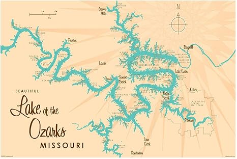 Amazon Com Poster Diseno De Mapa De Missouri Del Lago De Los Ozarks Home Kitchen