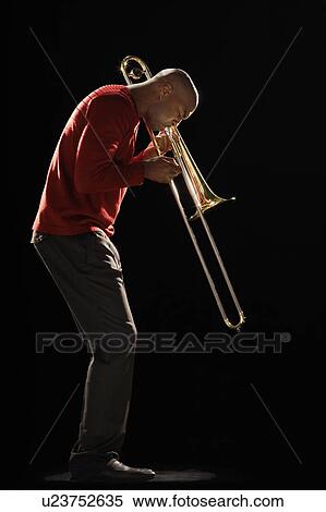 Homme Jouer Trombone Vue Cote Banques De Photographies U Fotosearch