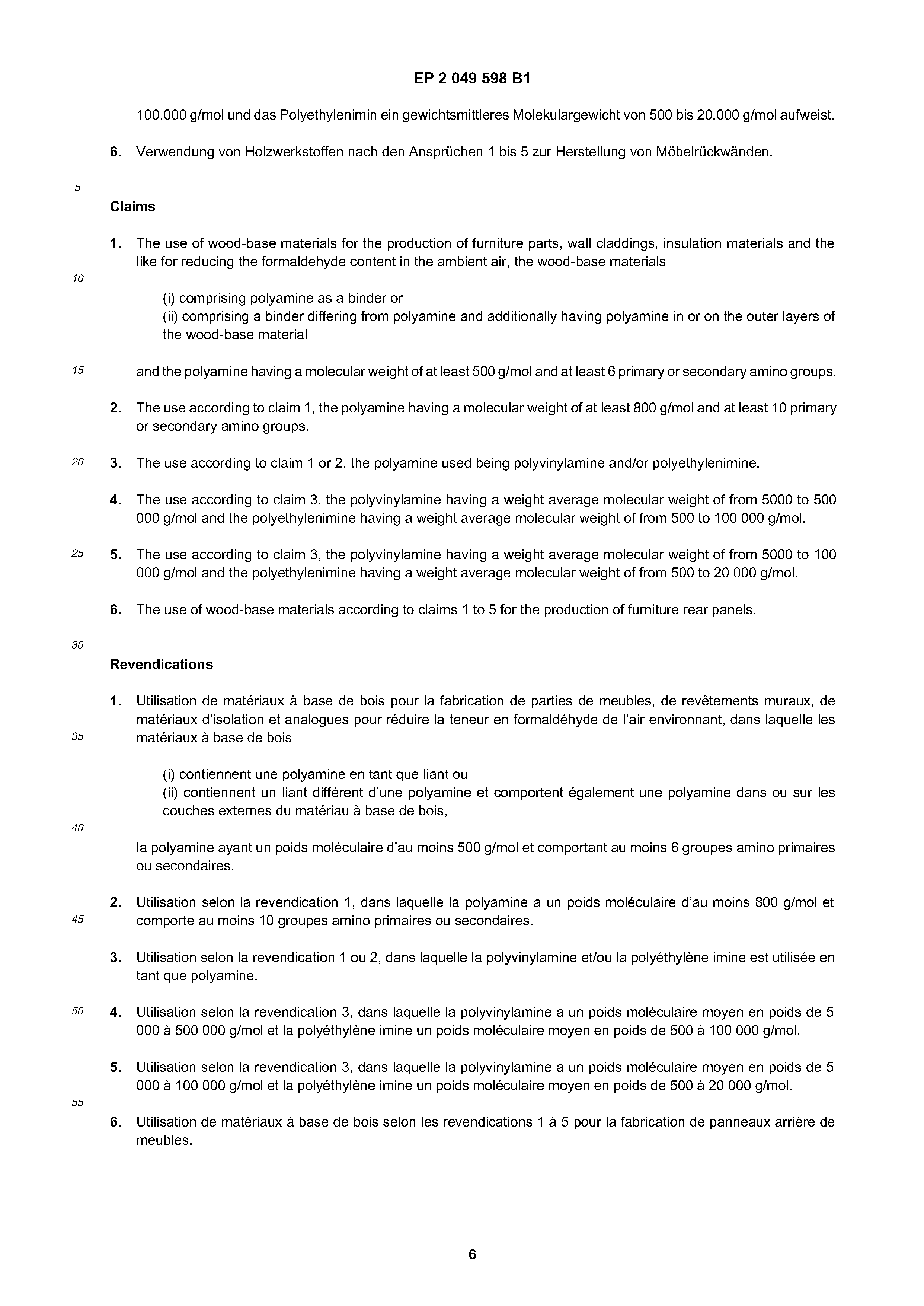 De D1 Verwendung Von Holzwerkstoffen Enthaltend Polyamin Zur Senkung Des Formaldehydgehalts In Der Umgebungsluft The Lens Free Open Patent And Scholarly Search