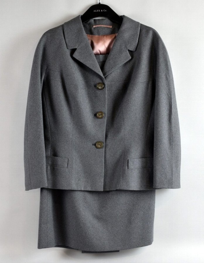 Antique 1940s Fashion Two Piece Suits And A Coral Smart Suit By Mondrow With Pencil Skirt And A Gorray Grey Worsted Ladies Two Piece Skirt With Paste Brooches To Lapels To