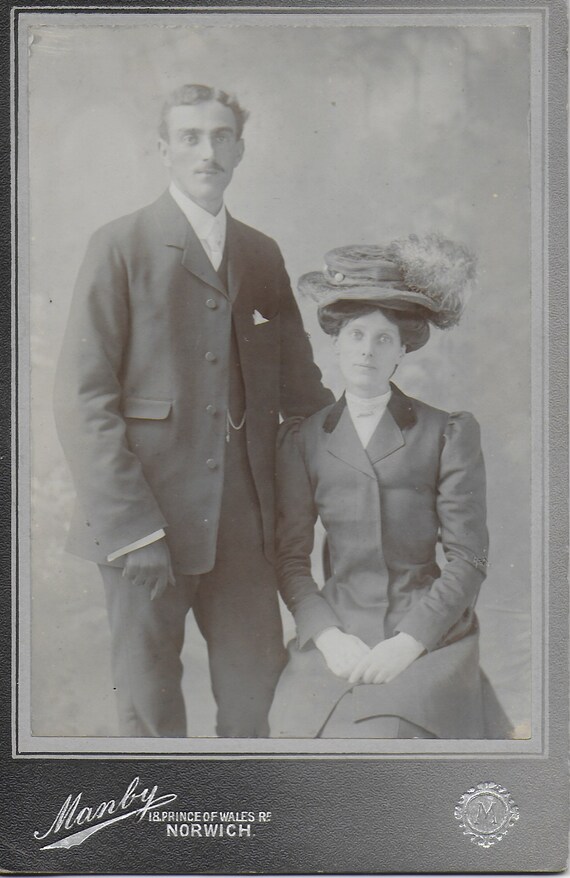 Edwardian Cabinet Card Edwardian Couple Big Hat Smart Suit Etsy