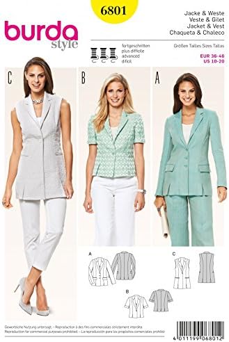 Amazon Com Burda Ladies Sewing Pattern 6801 Smart Suit Jackets Waistcoat Home Kitchen