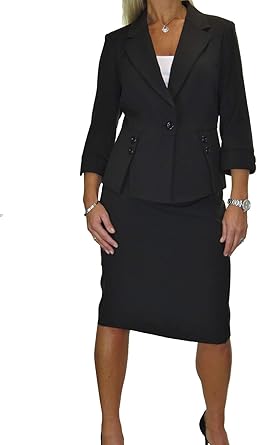 Women S Business Designer Look Fully Lined 2 Piece Suit Ladies Smart Lightweight Washable Button Detail Office Button Blazer Skirt Suit 8 16 Amazon Co Uk Clothing