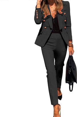 Womens Smart Formal Business Long Sleeve Jacket Full Length Trousers Suit Ladies Tailored Finish Soft Lined Office 2 Piece 10 Trouser Suits Clothing