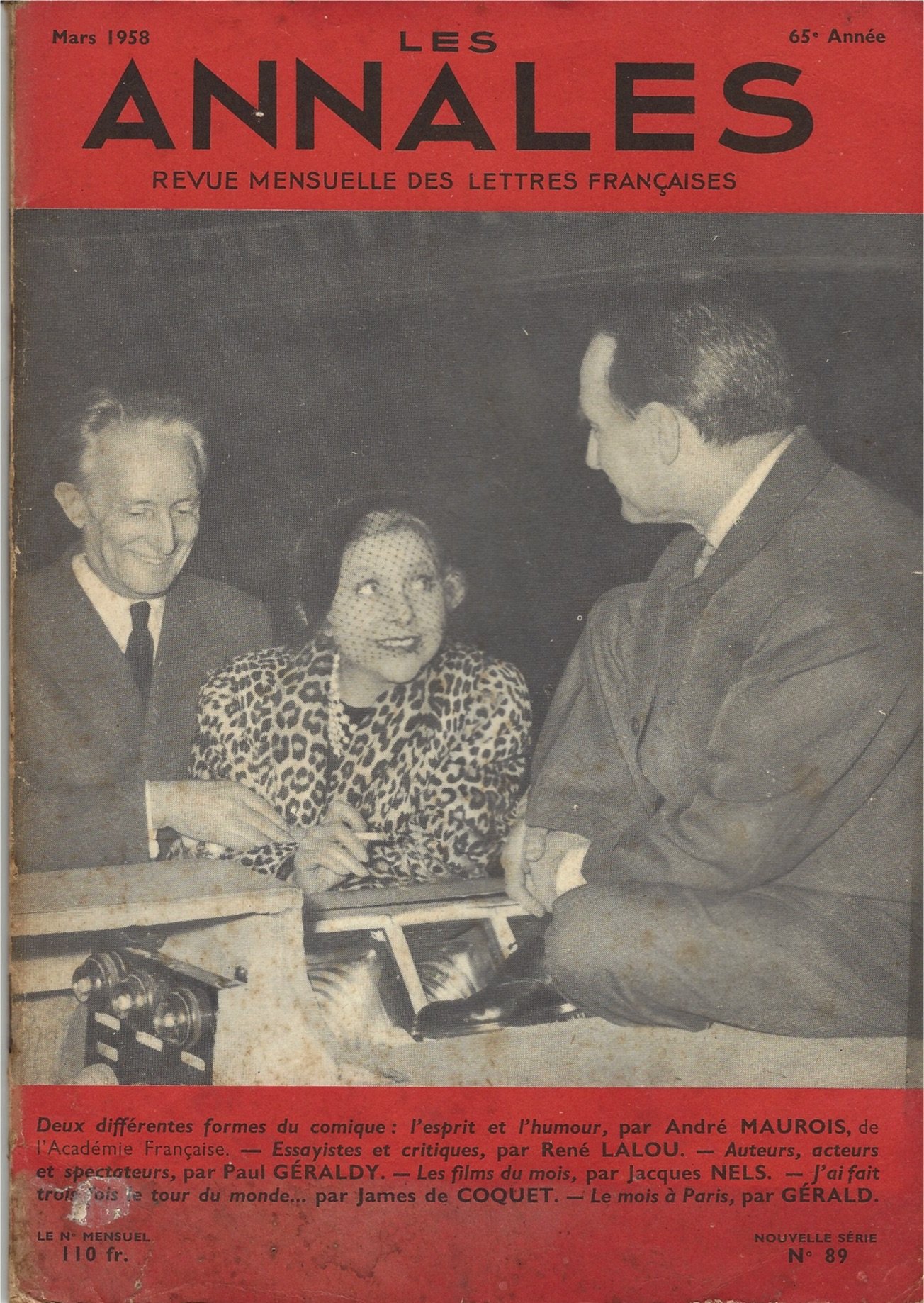 Les Annales Revue Mensuelle Des Lettres Francaises Mars 1958 N 2 Differentes Formes Du Comique Essayistes Et Critiques Par Rene Lalou Auteurs Acteurs Et Spectateurs Par Paul Geraldy Etc Andre Maurois Rene
