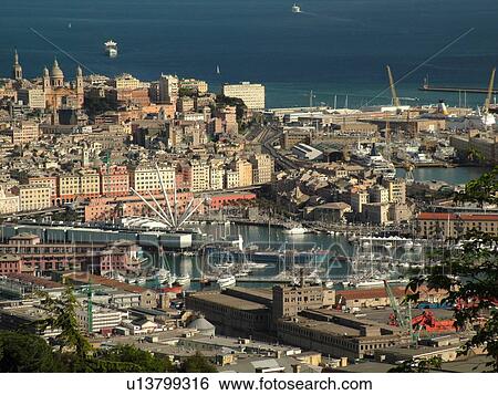 Genes Italie Genova Liguria Europe Vue De Ville Et Les Port De Genes Long Les Ligurian Sea Banque De Photo U Fotosearch