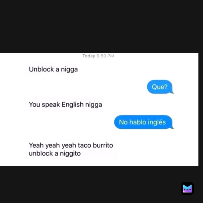 And Unblock A Nigga Today 633 Pm Quez You Speak English Nigga No Habla Ingles Yeah Yeah Yeah Taco Burrito Unblock A Niggito Yeah Meme On Me Me