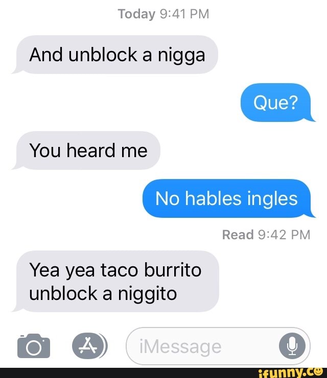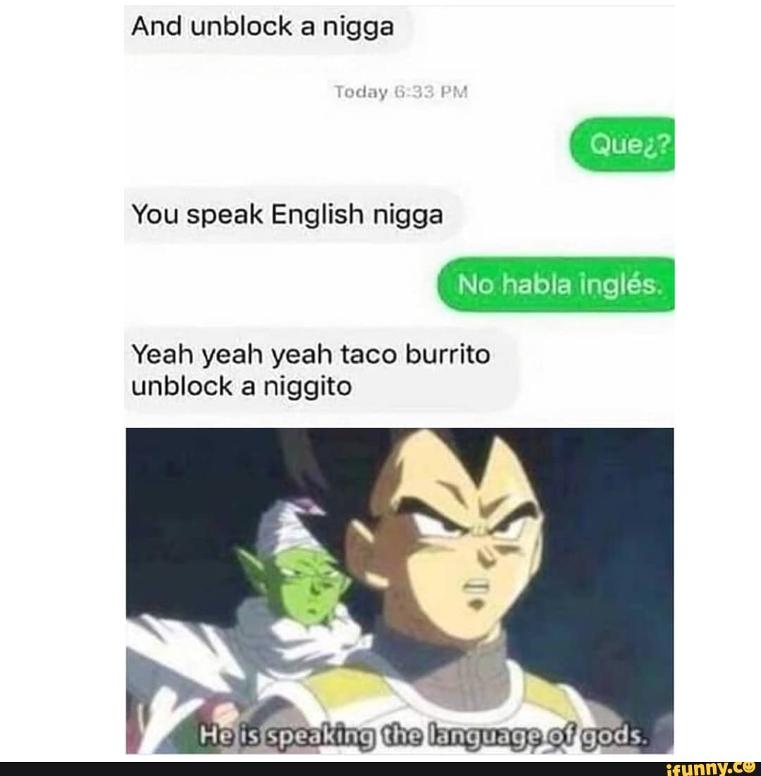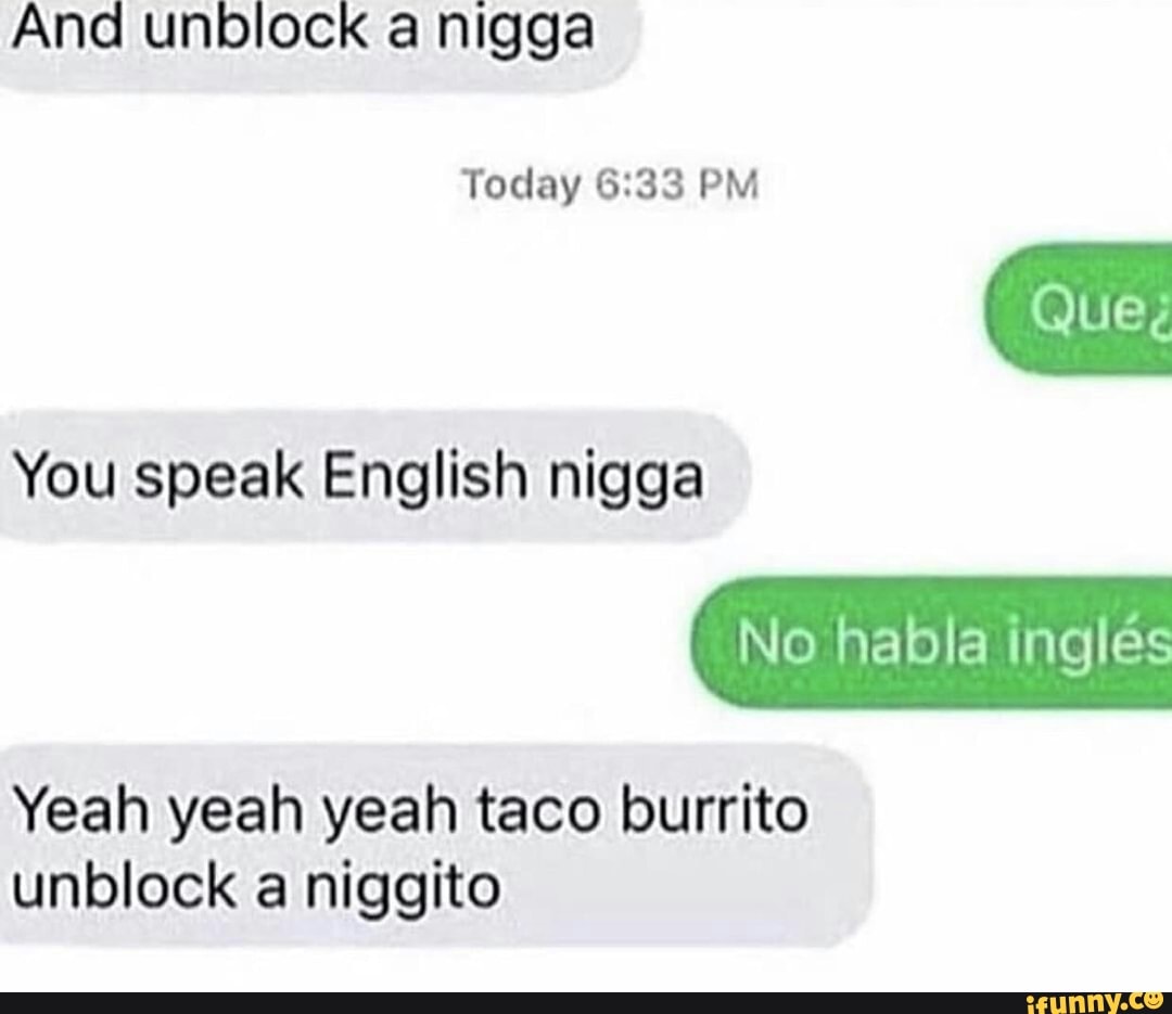 And Unblock A Nigga Today Pm You Speak English Nigga No Habla Ingles Yeah Yeah Yeah Taco Burrito Unblock A Niggito Ifunny