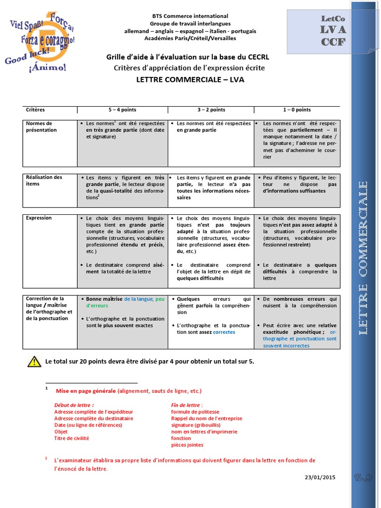 Criteres D Evaluation Lettre Commerciale Lva Bts Communication Humaine Linguistique