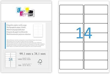 1400 Etiquettes Autocollantes Etiquettes 99 X 38 Mm 14 Etiquettes Par Labels Autocollants 100 Feuilles D Etiquette 99 1 X 38 1 Tva Deductible Contrairement A Certains Vendeurs Auto Entrepreneurs Ref Univers Graphique Uge141 100 Amazon