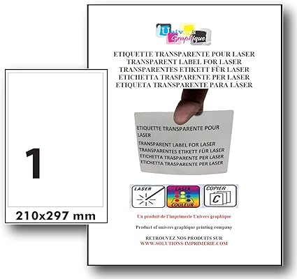 Stickers Transparents Brillant Pour Imprimante Laser 10 Planches Autocollant Etiquette Synthetique Plastique Autocollante Pour Tout Support Lisse Resistante A L Eau Et Aux Huiles Amazon Fr Fournitures De Bureau