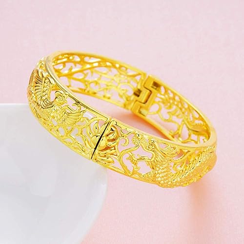 Longue Decoloration Dragon Creux Et Phoenix Mariee Bracelet Femelle Euro Pieces De Monnaie Cuivre Plaque Vietnam Sable Plaque Or Bracelet Bijoux Bijoux De Mariage Longfeng M Amazon Fr Bijoux