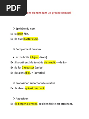 Les Fonctions Du Nom Dans Un Groupe Nominal