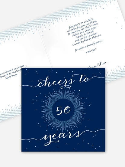 Carte à souhaiter anniversaire;. Carte invitation anniversaire 50 ans Invitez vos proches pour fêter vos 50 ans avec des jolies cartes d’invitation anniversaire 100% personnalisables Impression haute qualité Livraison offerte. * Texte sera personnalisé pour votre événement !.