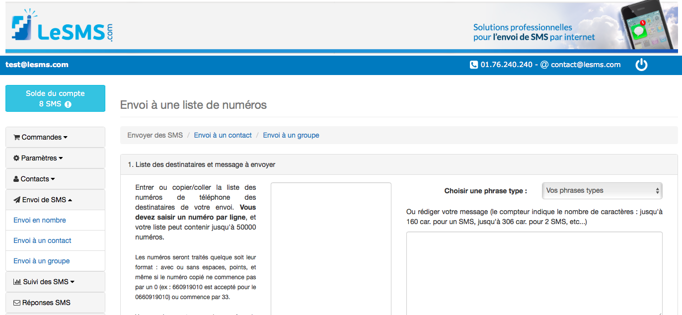 Envoyer des SMS personnalisés à un groupe de contact via l'application d'envoi de messages Envoi de SMS multiple en masse Aller au contenu Lun Ven 9H 19H Clever Technologies, 52, rue d’Emerainville, 771 CROISSYBEAUBOURG 01 60 53 60 53. Je n'arrive pas à envoyer un message à un groupe de contacts déjà existant dans mon téléphone Avez vous une solution autre que celle d'envoyer le message individuellement à chaque contact?. Envoi et réception de messages SMS professionnels depuis la plateforme en ligne SMSEnvoi ou via notre API Contacteznous pour un essai gratuit de nos services.