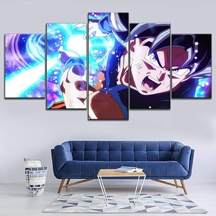 Threu 5 Pieces Toile Peinture Impression Decoration De Maison Moderne Modulaire Panneaux Motif Tableau Cadeau Parfait Goku Anime Dragon Ball Super 150cm 80cm Avec Cadre Amazon Fr Cuisine Maison