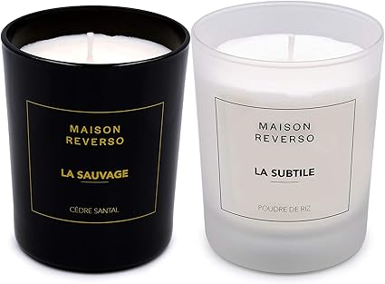 Maison Reverso Lot De 2 Bougies Parfumees La Subtile Et La Sauvage 100 Fabriquees En France 180g Jusqu A 45h De Combustion Cire Vegetale Amazon Fr Cuisine Maison