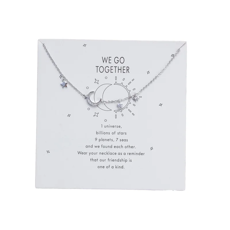 Carte De Souhait Etoiles Argentees Lune Bracelet Symbole De L Amitie Eternelle Chaine Bracelet A Breloques Femme Bijoux Cadeau Delicat Ey6028 Aliexpress