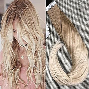 Full Shine Highlight Brun Avec Blonde 12 24 Tape Bandes Extension Balayage Chatain Cheveux Humain Remy 16 Pouces 50g Amazon Fr Beaute Et Parfum