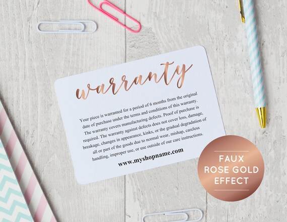 Rose Gold Warranty Card Template Instant Download Editable Etsy