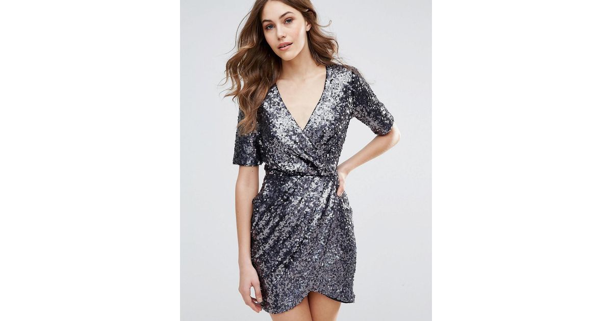 French Connection Synthetic Lunar Sparkle Wrap Party Dress In Gray Lyst