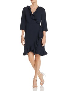 122 Vero Moda Women S Blue V Neck Ruffled 3 4 Sleeve Wrap Party Dress Size S Ebay