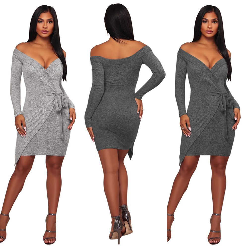 Deep V Neck Sexy Wrap Dress Womens Fashion Party Dress Bow Long Sleeve Bodycon Casual Loose Mini Dress Tops Blouse Shirt Ladies Dress Designer Dress From Hengytrade 12 37 Dhgate Com