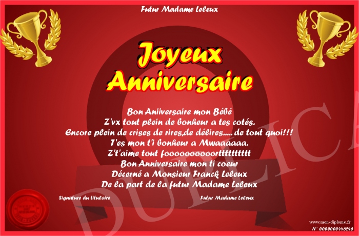Joyeux anniversaire mon bebe. Joyeux demianniversaire aux autres bébés du 12!!. Envoyer par SMS Tu sais tout sur moi, je sais tout sur toi On est meilleurs amis, yada yada yada Puisque nous pouvons lire dans les pensées des autres, je n'ai pas besoin d'un message créatif Un très Joyeux Anniversaire !. “Joyeux anniversaire, mon fils” est bien plus qu’un message qui marque la célébration d’une année supplémentaire C’est le témoignage d’un amour inconditionnel entre un parent et son enfant.