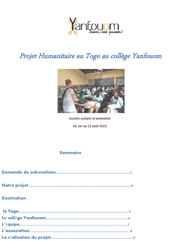 Projet Humanitaire Au Togo Au College Yanfouom Universite Ecoles