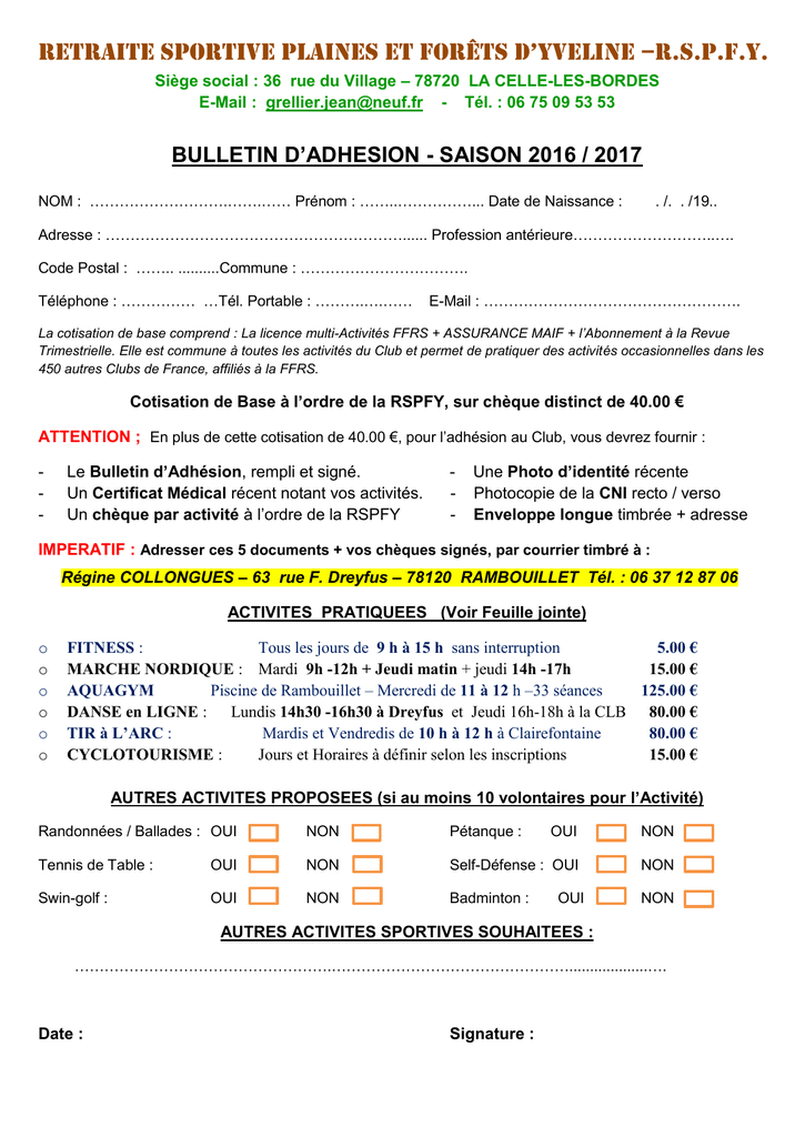 Bulletin D Adhesion Retraite Sportive Plaines Et Forets D Yveline