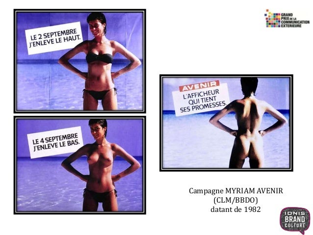 Lafficheur qui tient ses promesses. Elle s’engage alors « Le 4 septembre, j’enlève le bas » Et le 4 septembre, c’est la quasiapoplexie Myriam dévoile ses fesses avec une troisième accroche qui est la révélation de cette campagne teasing « Avenir, l’afficheur qui tient ses promesses » La France ne parle plus que de cela. Quelques jours plus tard, nue mais montrée de dos, elle conclut « Avenir, l'afficheur qui tient ses promesses » Cette jeune femme, nommée Myriam, est restée un cas d'école fréquemment cité dans les ouvrages et les formations sur la publicité En politique. Vous vous souvenez peut être de cette pub des années 80, "Avenir, l'afficheur qui tient ses promesses", tout ça parce qu'Avenir avait fait promettre un jour à une belle naiade d'enlever le.