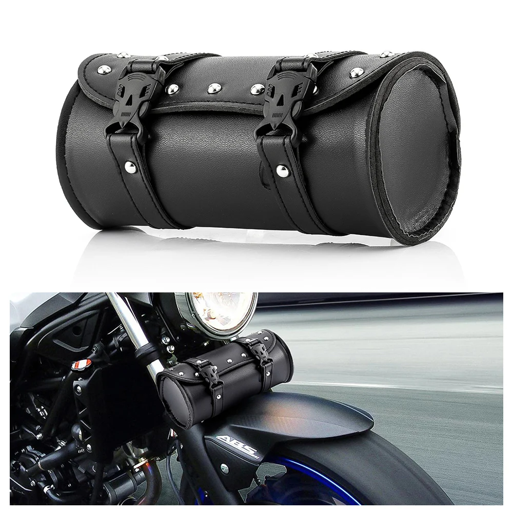 Round Small Soft Leather Fork Or Handlebar Tool Bag For Motorcycles Harley Onboard Tool Bags Repair Kits Vehicle Parts Accessories