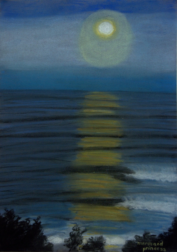 Luz De La Luna Dibujo Pastel Suave De Reflexion Etsy