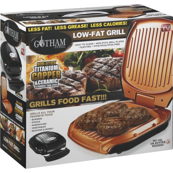 All of the oil and fat is collected in a little tray which snugly slides under the base of the appliance, so it is out of the way and can’t be knocked when in use The fat drains away via one single channel, reducing the amount of mess created Overall, for the price, it is a good grill. Lowfat chicken, chili, and sides See hundreds of top lowfat recipes, including videos to help you make them Find healthier dinners now!. Product Details Enjoy delicious grilled foods yearround with the Gotham Steel Electric Grill Designed so grease drips away from the food as it cooks, the Gotham Steel Indoor Grill makes lowfat cooking easy Plus like all our Gotham Steel products, it's made of TiCerama surface which combines super strong titanium with super slick ceramic which means sticking or scratching is a thing of the past.
