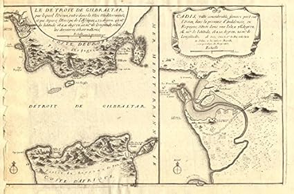Le Detroit De Gilbraltar Cadis Detroit De Gibraltar Cadiz De Fer 1705 Old Antique Imprime Carte Vintage Cartes De L Espagne Amazon Fr Cuisine Maison