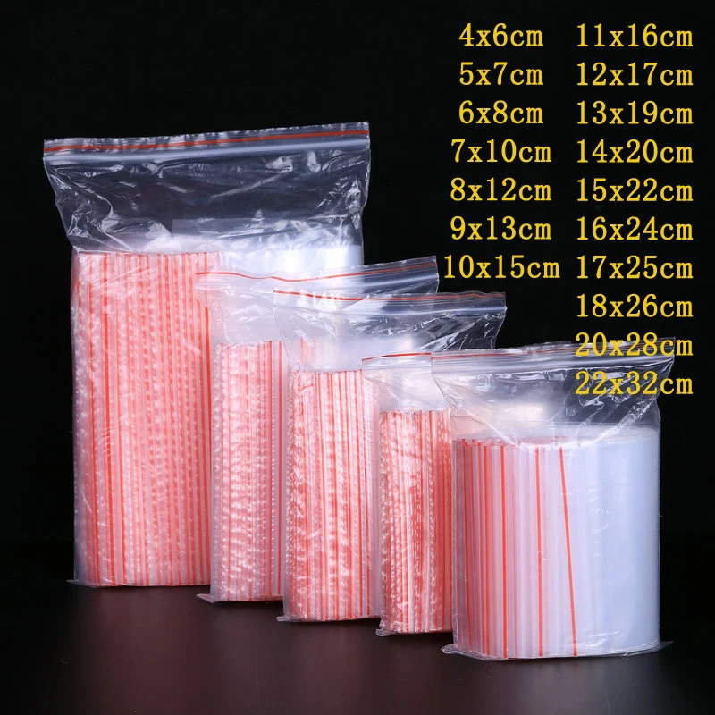 100pieces Plastic Zipper Bag Zip Lock Bag Zip Bag Transparent Packaging Plastic Bag With Sealable Zipper Zip Lock Red Line Many Sizes Avaialble Lazada