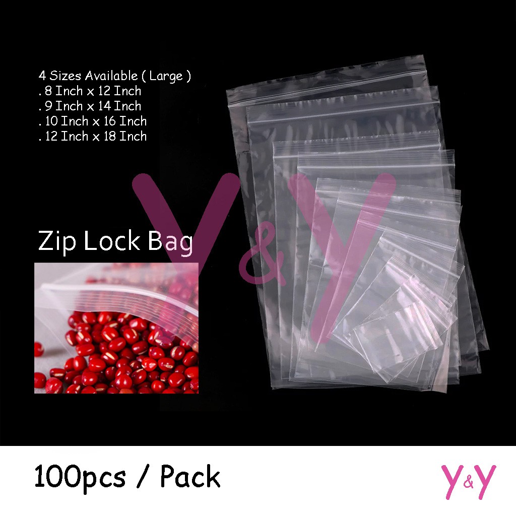 Large Size 100pcs Plastic Zip Lock Bag Plastic Zipper Bag Zip Bag Packaging Plastic Bag With Sealable Zip Lock Shopee Malaysia