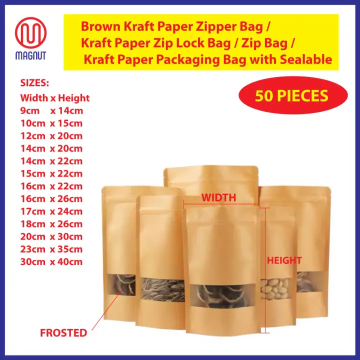 50pcs Brown Kraft Paper Zipper Bag Kraft Paper Zip Lock Bag Zip Bag Kraft Paper Packaging Bag With Sealable Zipper Zip Lock Many Sizes Available Lazada