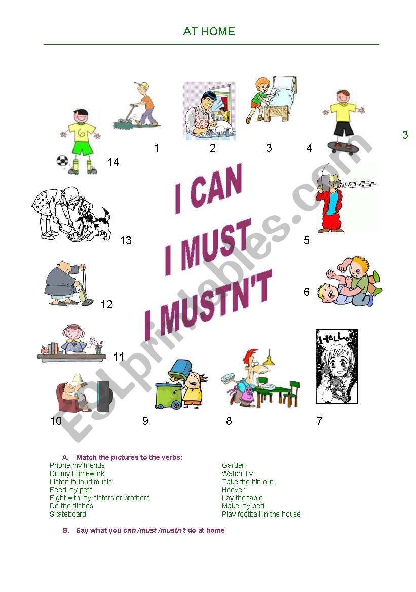 Talking About What You Can Must And Mustn T Do At Home Esl Worksheet By Malou5972