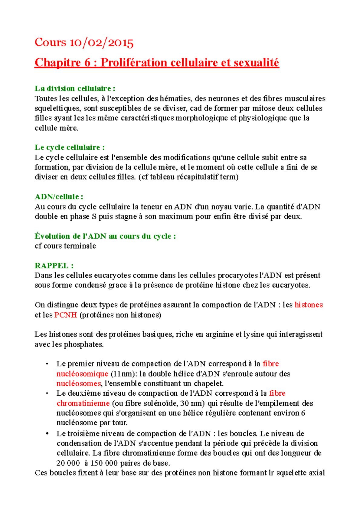 Fibre nucléosomique Aspect en collier de « perles » Perle = 1 nucléosomes (de diamètre 11 ) 1,65 tour d’ADN (= 146 p) autour de chaque nucléosome Entre les nucléosomes ADN de liaison (=ADN linker) de 0 à quelques dizaines de pb. Cette fibre nucléosomique est de l’ADN enroulé dans plusieurs nucléosomes L’ensemble va former un chapelet des perles L’ADN (double hélice) associé a des nucléosomes constituent ce. PAES 1011 STAGE DE PRÉ RENTRÉE UE 2 Introduction • Théorie cellulaire toute cellule est issue d’une cellule • L’information génétique est transmise aux 2 cellules filles à chaque division • Le génome de la cellule eucaryote – le matériel génétique est enfermé dans un compartiment membranaire le noyau – matériel génétique = chromosomes Rappel sur les.