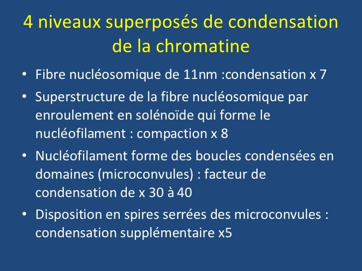 2) Structure de la chromatine STRUCTURE NUCLEOSOMIQUE ADN Historiés Structure en "collier de perles" = fibre nueléosomrque 0 11 nm — Q — B — 0 — B — 0 — Q— Le NUCLEOSOME = un octamère d'histones CM Enveloppe nucléaire nueléoplamse t t Lt ** îO 2. O Scribd é o maior site social de leitura e publicação do mundo. Cycle et divisions cellulaires, Fibre nucléosomique décondensée (chromosome chromatinien), Suite à la réplication, deux fibres décondensées réunies par un centromère, Condensation (), Degré maximal de condensation en métaphase = chromosome chromatidien métaphasique;.