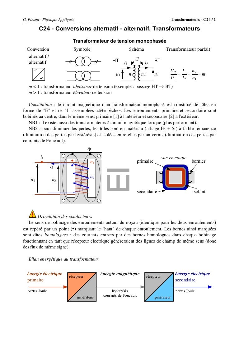 Transformateur Les Cours En Ligne Du Lycee De Navarre