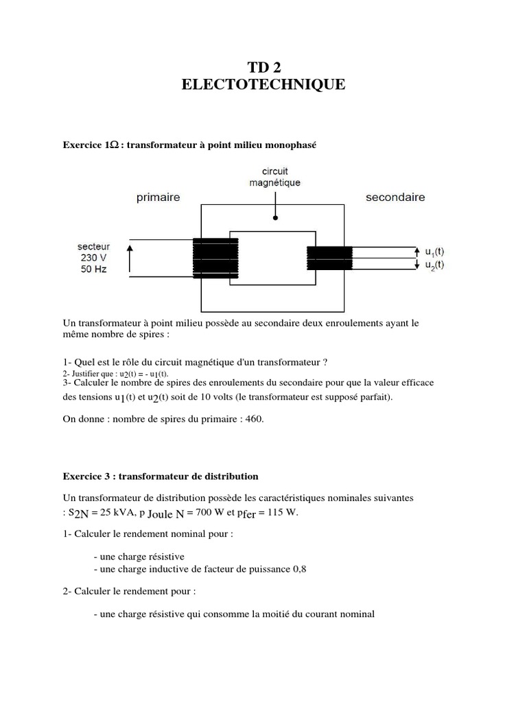 Td 2 Transformateur Pdf Transformateur Electrique Rapport Temporel